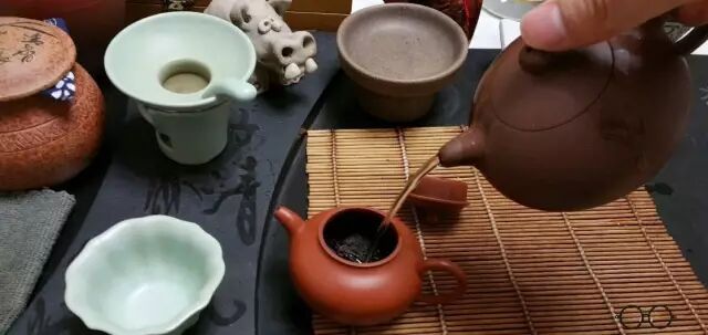 紫砂茶具興起,茶湯與茶具的色澤對(duì)比關(guān)系已顯得不那么重要,人們飲茶的側(cè)重點(diǎn)和注意力轉(zhuǎn)移到茶的韻味上來(lái),特別講究茶的“香”和“味”,而要使茶的“香”和“味”達(dá)到最佳狀態(tài),宜興紫砂壺是最佳選擇,因宜興紫砂壺比施釉的陶瓷茶壺具有更好的保“香”?!拔丁惫δ堋?/p>