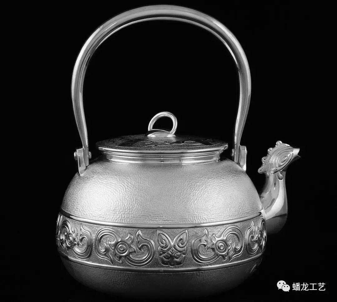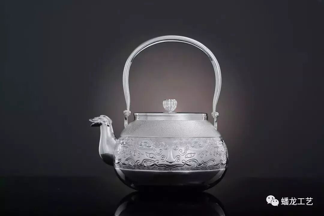 ▲蟠龍工藝制作“饕餮云雷銀壺”