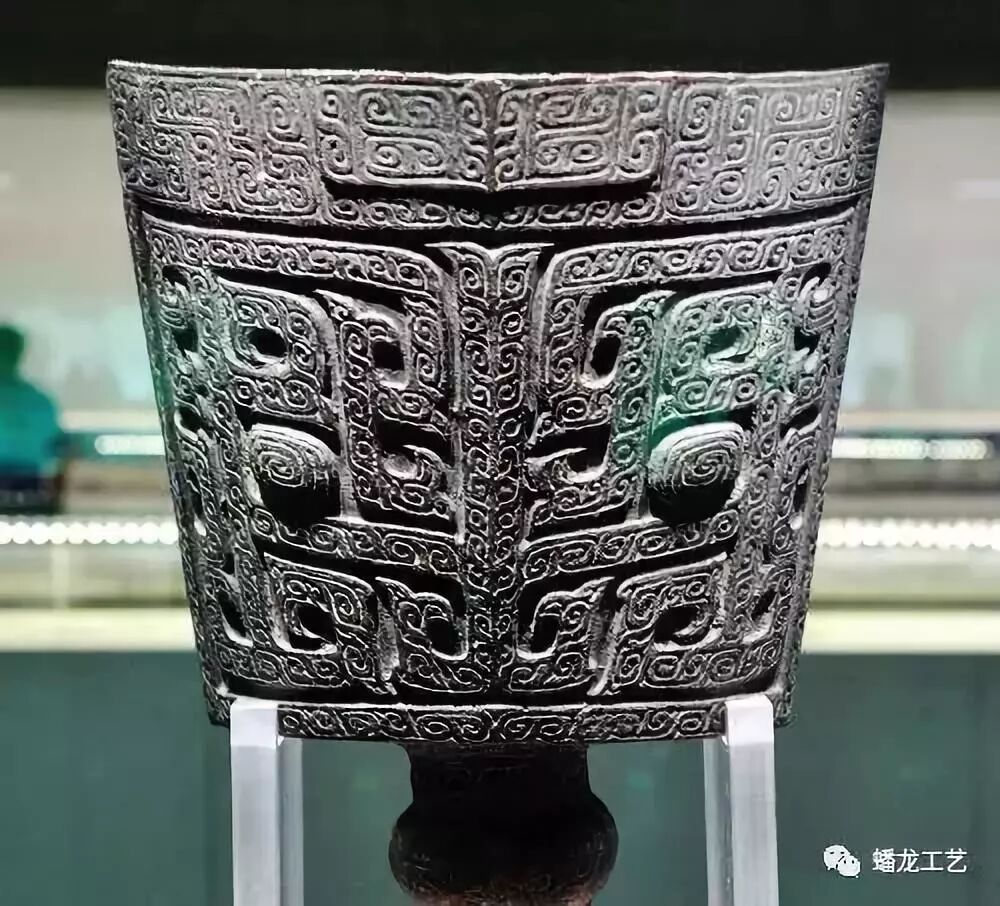 饕餮紋是青銅器上常見的紋飾之一,盛行于商代至西周早、中期。古人融合了自然界各種猛獸的特征,同時加以自己的想象而形成的,其中獸的面部巨大而夸張,裝飾性很強(qiáng),也被稱為獸面紋。饕餮紋有的有軀干、獸足,有的僅作獸面。