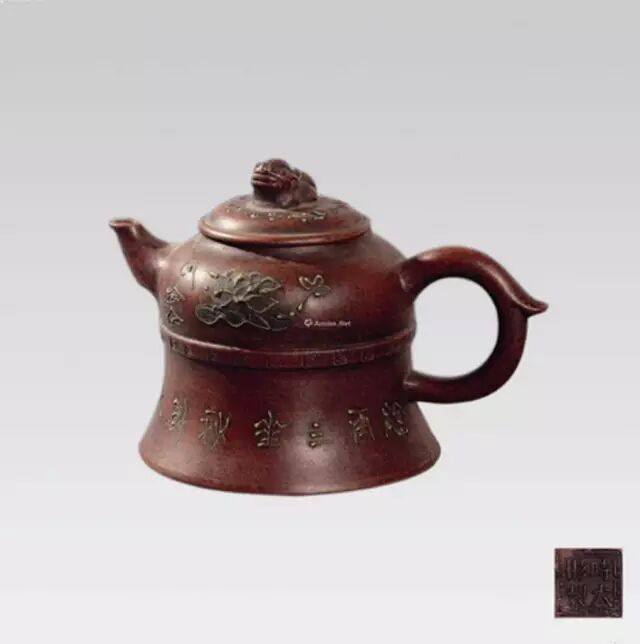 例如,明代制壺只重型制、質地,作品概為素色無彩。因此,只要壺身加上色彩,即可肯定不是明代古茶壺。其次,陳鳴遠首開 [壺蓋內用印]的先河,因此,如果是壺蓋內用印的真古壺,保證是陳鳴遠(明末清初)以后的作品。又如清道光年間,名家朱堅首創(chuàng)金屬(錫)包壺,并用玉石制作壺嘴、壺把。故如果壺身上鑲有錫或包銅時,即表示此壺必然是道光以后的作品。
