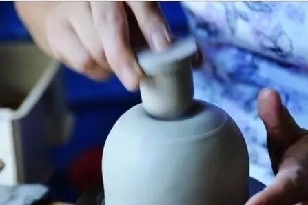 2.做一捺底壺,上底片前必須在虛坨上把底片虛起來(lái)