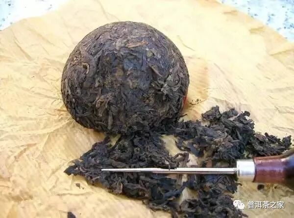 沱茶的撬法和茶餅類(lèi)似,也是從中間的凹陷處開(kāi)始著手,將茶針沿沱茶的內(nèi)渦邊緣用力插入,向里側(cè)撬起,也可以保持茶的外觀,同時(shí)比較好著力。
