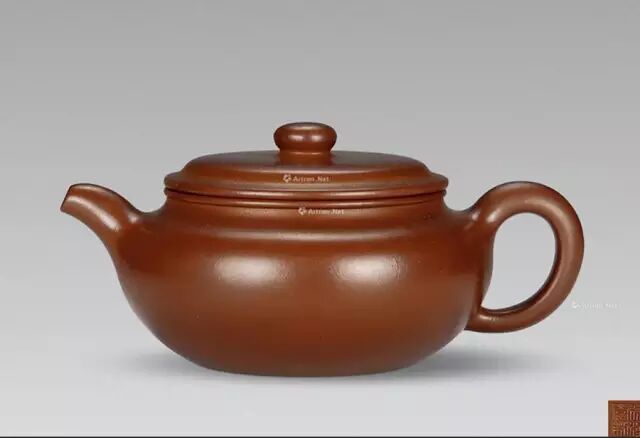 中國傳統(tǒng)的鼓多源于中原,秦漢前已有20余種。雖大小高矮不同,但幾乎都是粗腰筒狀。一說清代邵大亨初創(chuàng),原意是壺體仿照鼓型,后人仿制做這種壺形就成了仿古代壺型的意思了。另說最早見于近代趙松亭按吳大徴授意所作,身扁、腹鼓、頸高、蓋板平滑,壺蓋與口沿子母線吻合嚴密,合成圓線飽滿,扁鈕有力,虹鈕有勢,二彎流胥出自然;圓圈把勻勢而起,有些款把圓下有垂,富于靈動,整體骨肉亭勻,收展有度,有一氣呵成之暢。