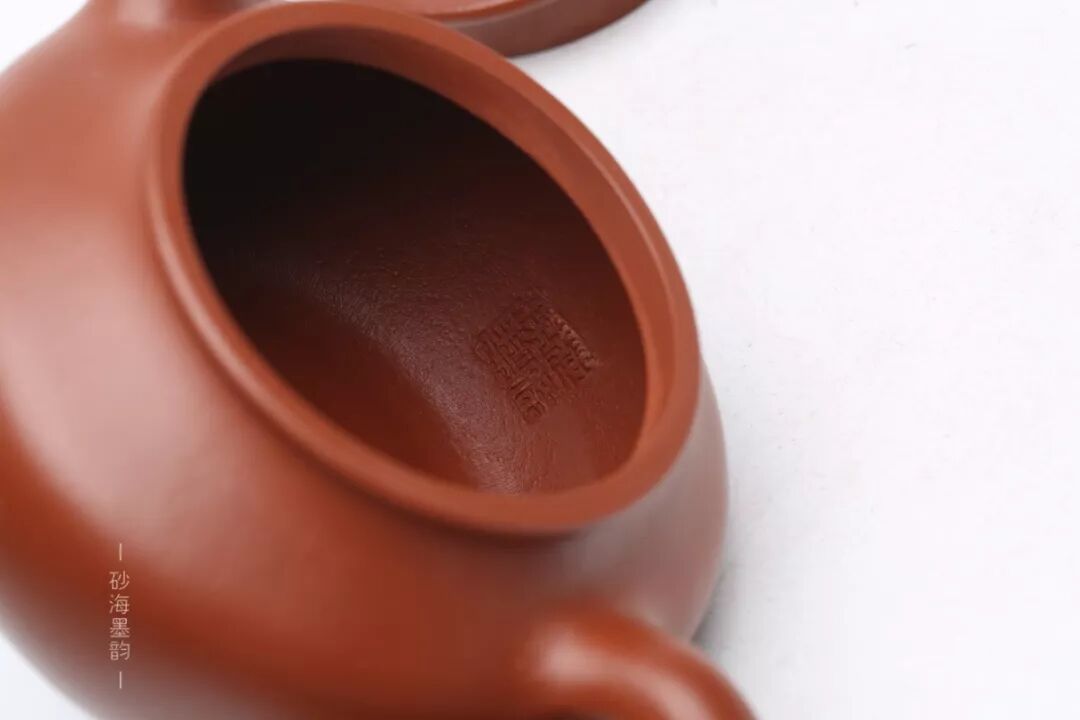 現(xiàn)代制壺,鈐印一般出現(xiàn)在三個位置:壺蓋內、壺底、壺把,也有個別特殊情況:如部分印章也會在壺內部或者壺身外部出現(xiàn)。