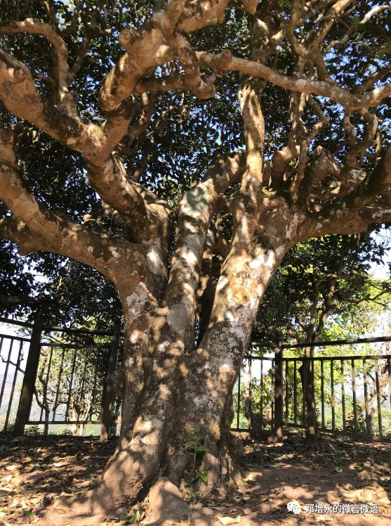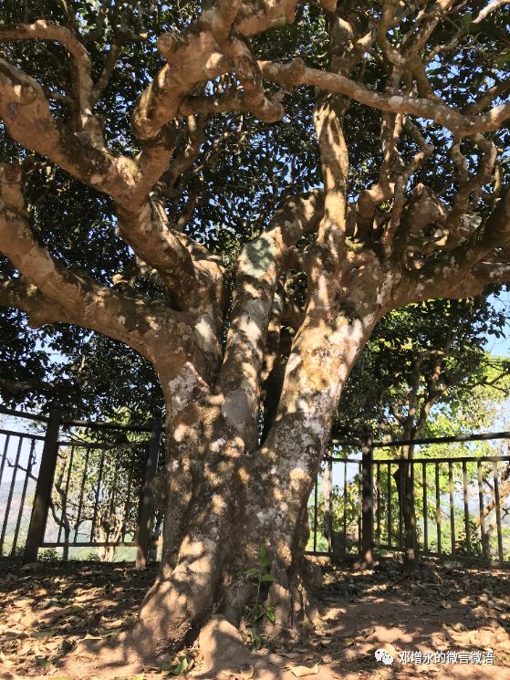 剛走進(jìn)古茶園,迎面就看到這棵碩大的古茶樹,西保4號。我們一起來感覺一下: