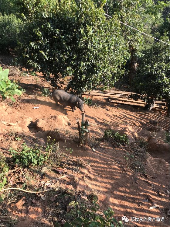 古茶樹下的冬瓜豬。冬瓜豬又被稱為“油葫蘆”或“細(xì)骨豬”,屬于體型較小的滇南小耳豬,是云南省唯一的由本土野豬馴化而來的本地豬種。冬瓜豬肉質(zhì)上乘,肥而不膩,肉質(zhì)鮮嫩細(xì)膩,實在美味。