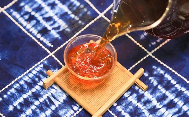 茶湯紅濃明亮,像極了紅酒。陳年熟茶,承載了時(shí)光的滋味,口感香糯爽滑,醇香四溢。