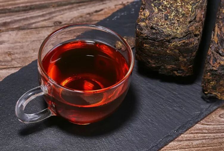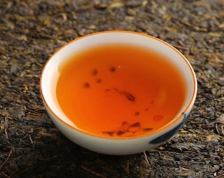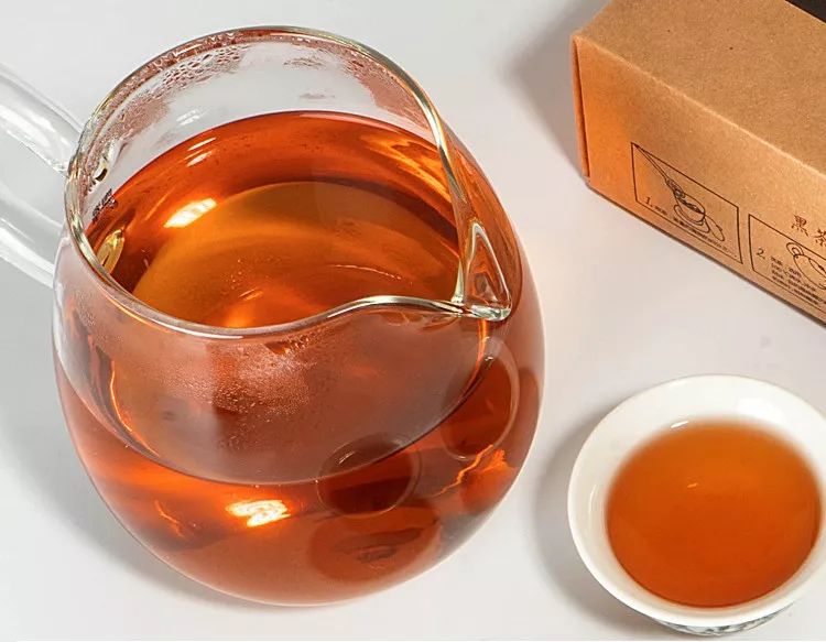李白有詩日:“玉碗盛來琥珀光。”(《客中作》)雖然是寫酒,但用來形容黑茶的湯色,也很貼切。年份越久的黑茶顏色越紅,置于玻璃杯中,明亮見底,仿佛存放多年的紅酒。