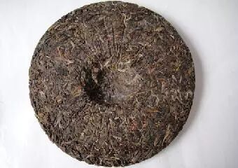 其實,在茶餅制作過程中,為了用布袋裝好一定重量的茶箐來進(jìn)行后期的石磨定形,所以在棉布包餅的時候會在茶餅中間打一個結(jié),最終壓制好以后,茶中間就會出現(xiàn)凹槽。