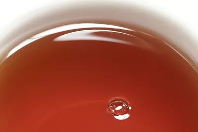 自然光下,紅艷的茶湯在與茶杯的杯壁接觸面上會(huì)形成一個(gè)明亮的金圈,這是茶湯紅亮鮮活的標(biāo)志,也是茶紅素、茶黃素和茶褐素等物質(zhì)共同作用的結(jié)果。