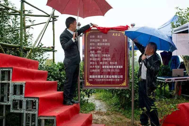 這里更有生長于英德市英茶王茶業(yè)有限公司的石牯塘石小茶廠的龍株茶王,屬地方變異品種。蘑菇形樹冠,至2016年冠幅直徑達(dá)7米,樹高4米。經(jīng)專家考證種植時間為1961年初,是迄今為止英德人工建造的萬畝茶園里樹齡最老樹冠最大的老茶樹。多年來茶王受到袁學(xué)培、陳杖洲、曹藩榮等多位茶葉專家、技術(shù)專家的關(guān)注,多次親臨現(xiàn)場勘查研究指道保育方法。