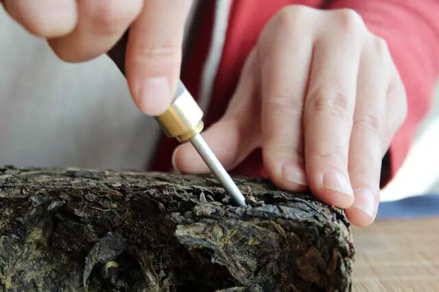4、時(shí)刻要“抽針重來”,因?yàn)椴枞~在茶餅或茶磚里團(tuán)結(jié)友愛的抱團(tuán)成塊,一個(gè)不注意,茶針就會(huì)戳破或者戳壞茶葉條索的完整度,撬下來全是碎茶,所以感覺不對(duì)就要拔出來。