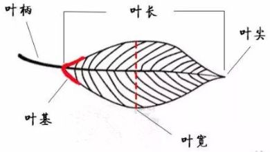 依據(jù)上圖,葉長(zhǎng),不含葉柄和葉尖;葉寬,則是葉基和葉尖對(duì)折后的中間部位。