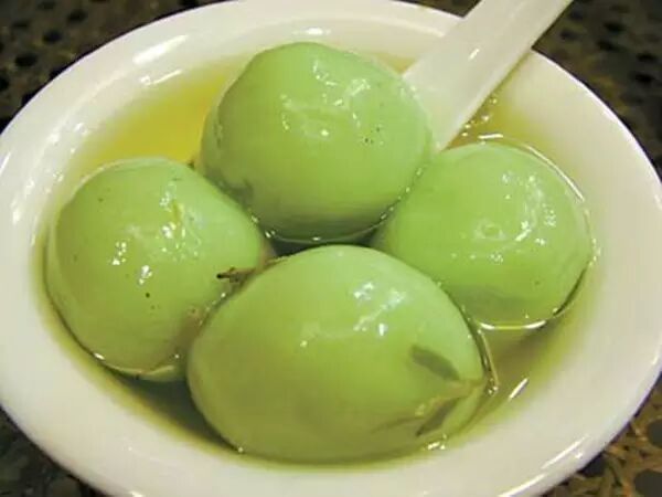 制法:煮好的冰糖水中放入新鮮的苦丁茶、杭白菊、枸杞子,再放入煮熟的湯圓。