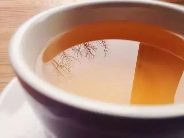 是夜,茶香滿室, 杯中茶由淡變濃,