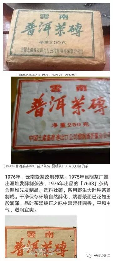 香港世界茶文化交流協(xié)會王曼源會長提供了一堆茶,在臺灣出版了一本書,叫《普洱茶譜》,其中有片茶磚“7638”,純屬子虛烏有。市場按圖索驥,越傳越離譜,一會是景谷茶廠生產(chǎn),一會是昆明茶廠生產(chǎn),其實都是王會長出版之時剛剛生產(chǎn)。臺灣出版是另一本書《普洱藏茶》則把7638編的更離譜,推斷70年代昆明茶廠發(fā)明了所謂的“生熟配”工藝。稍有茶學常識的人也可以清楚,生茶熟茶茶性相反,如何硬搭?
