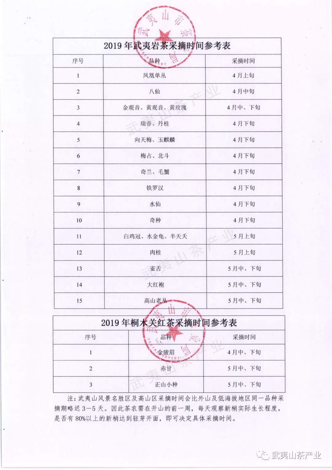 巖茶、紅茶各品種茶采摘時間表