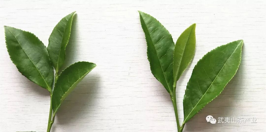 ?采摘標準:武夷巖茶制作工藝對鮮葉的要求嚴格,不可過嫩或過老采。鮮葉過嫩則茶香低,味苦澀,偏嫩的芽梢,因嫩葉的葉表皮角質層較薄,容易造成萎凋或做青過程中的“死青”現(xiàn)象,也就無法順利完成萎凋或做青工藝;過老則香粗味淡。因此,武夷巖茶采摘以新梢駐芽二、三葉,根據(jù)不同品種的特性,分為小開面、中開面和大開面采。