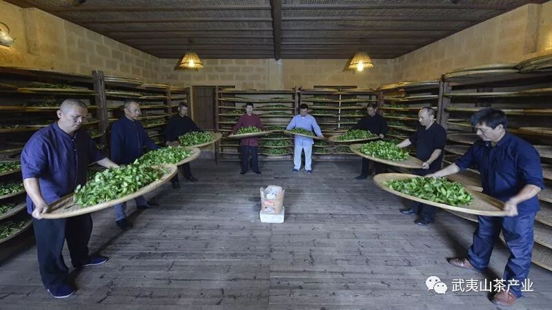 ????在4月中旬至5月中旬屬于武夷巖茶初制階段。武夷巖茶初制口訣主要是:“一采二倒青,三搖四圍水,五炒六揉金,七烘八撿梗,九復十篩分”。