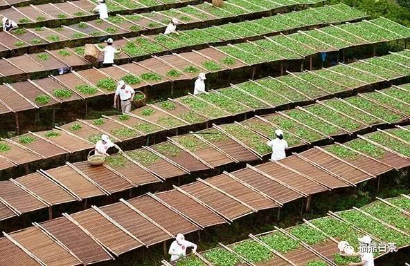 2015年,點(diǎn)頭鎮(zhèn)六妙白茶莊園內(nèi),60000斤(3萬公斤)茶青同時(shí)攤晾,成功創(chuàng)造了世界上竹籩最多的曬茶場世界紀(jì)錄。