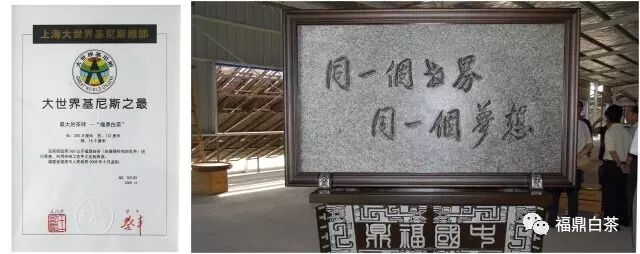 2008年,上海大世界基尼斯總部確認(rèn)為北京奧運(yùn)會(huì)特制的“福鼎白茶茶磚”為中國最大的茶磚并予以頒牌。