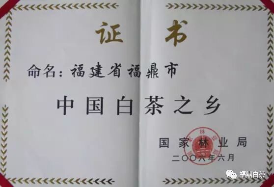 2006年,福鼎被國家林業(yè)局授予“中國白茶之鄉(xiāng)”稱號,這是中國第一個(gè)和唯一一個(gè)被政府部門授予的白茶之鄉(xiāng)。