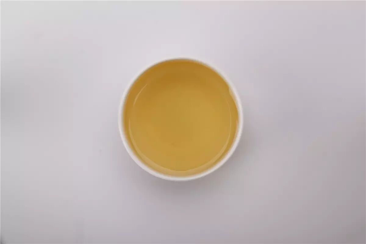 第五泡:香氣清香高揚(yáng),伴甜香,湯色金黃明亮,滋味濃厚,喉韻清甜悠長,杯香顯露
