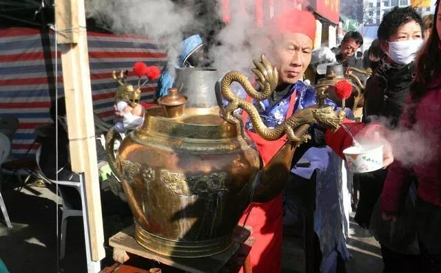 老北京茶湯相傳源于明代,因用水沖熟,如沏茶一般,故名茶湯,又因用龍頭嘴的壺沖制,故也稱“龍茶”。傳到現(xiàn)在,茶湯主要有山東茶湯和北京茶湯兩種。北京茶湯更為傳統(tǒng),其味甜香醇,色澤杏黃,味道細膩耐品。清嘉慶年間的《都門竹枝詞》中有“清晨一碗甜漿粥,才吃茶湯又面茶”。1997年12月,北京天橋茶湯李飲食店制作的茶湯,被中國烹飪協(xié)會授予首屆全國中華名小吃稱號。
