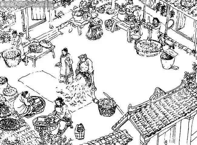 (古代制茶圖)