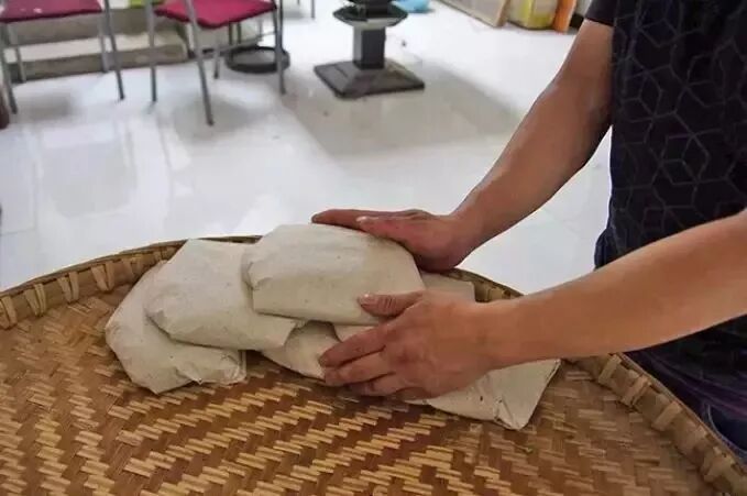 燜堆渥黃這道工序是黃茶的核心所在,所謂燜堆渥黃,是指將殺青過后的茶葉用紙包好,或堆積用濕布蓋上,促使茶坯在水熱作用下進行非酶性的自動氧化,形成黃色。