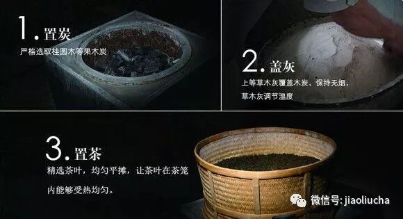 炭焙首先必須打焙窟,操作過程包括起火、燃燒、覆灰、溫度控制。然后才能進行焙茶。炭焙溫度120℃,時間8—12h,攤?cè)~厚度達烘籠的八成,每籠的攤?cè)~量達4—5kg。