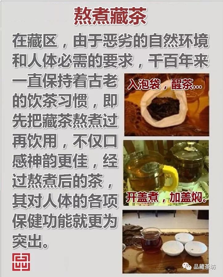 經(jīng)過熬煮后的藏茶,不僅口感神韻更佳,更為重要的是茶葉內(nèi)的浸出物能與水充分絡合,其對人體的各項保健功能就更為突出,只能令其它沖泡飲用類的茶感覺到“火候欠佳”。