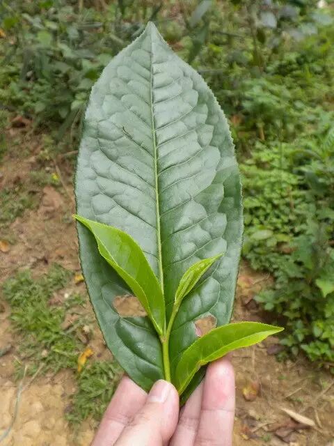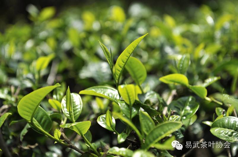 易武、曼臘茶種群體較純,從葉型可初步分為長葉型、橢圓型、卵圓形,邊緣齒明顯,條索肥壯顯豪;從茶芽可分為紅梗綠芽、綠梗綠芽兩種。對易武茶樹地方品種可稱為易武長葉茶、易武圓葉茶、易武綠梗綠芽茶和易武紅梗綠芽茶。