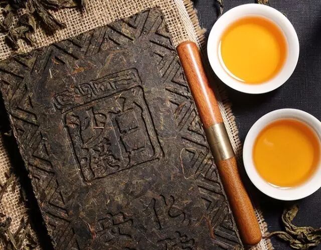 磚面平整,棱角分明,色澤黑褐,香氣純正,帶松煙香,湯色黃琥珀色,滋味醇和,微澀,略帶梅子味,陳茶轉(zhuǎn)化為樟香味。