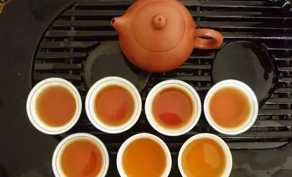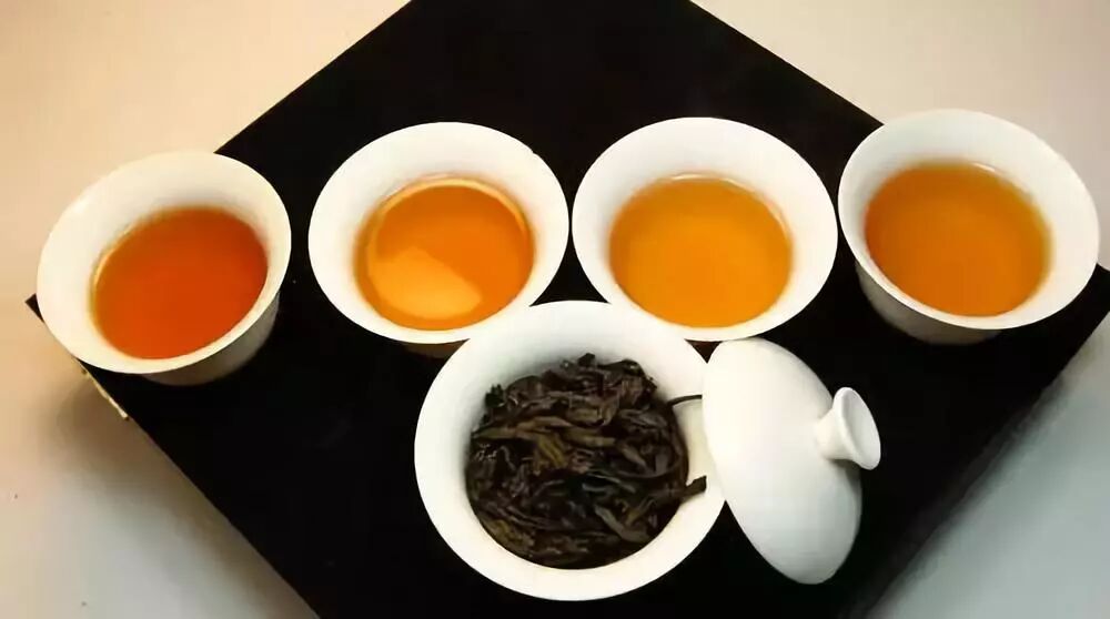5、湯色:武夷巖茶湯色一般呈深橙黃色,清澈鮮麗,且須泡至第三、四次而水色仍不變淡者為貴。