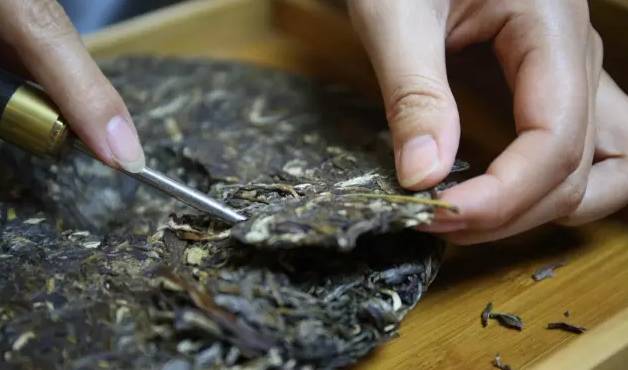 解茶時(shí)要盡量保持葉片的完整性,順著葉片的規(guī)律去開解。解老茶又被稱之為“撥茶”,因?yàn)槟甏眠h(yuǎn)的老茶,茶體往往已比較松散,用手指輕輕地?fù)軇?dòng)或觸碰,葉片就會(huì)自然散開。