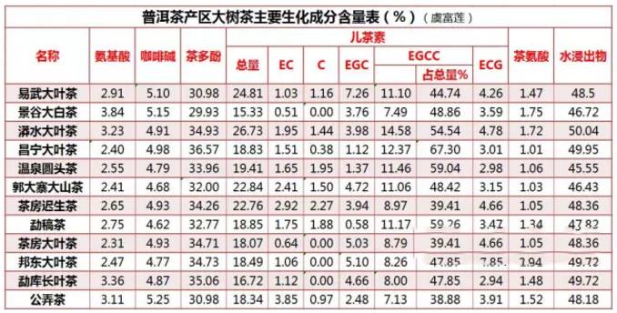 普洱茶產區(qū)大茶樹主要生化成分含量表