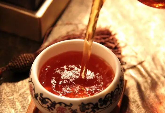 紅艷:鮮艷明亮,油面厚而艷,是茶湯中物制質(zhì)豐富。普洱茶品質(zhì)好的表現(xiàn)。
