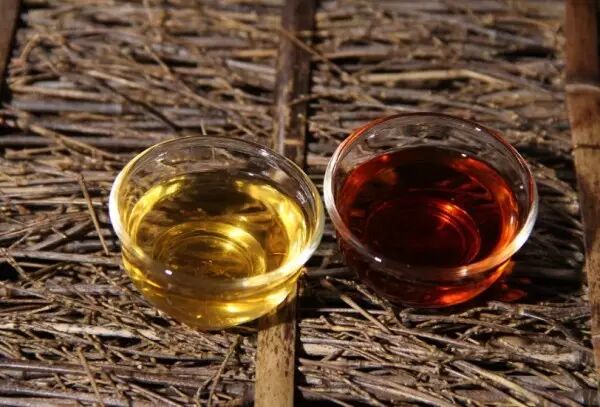 紫娟與紫芽最大差別為葉型葉脈,紫娟為中小葉種,葉身薄而葉賣不明顯,而紫芽為大葉種,葉身墨綠深厚,葉脈突顯與栽培野生茶類似。另外,紫娟毛茶湯色為紫色,湯質(zhì)薄帶明顯苦味;紫芽毛茶湯色金黃,湯質(zhì)厚重、口感飽滿、回韻足,茶質(zhì)介于栽培野生茶與野放茶之間。