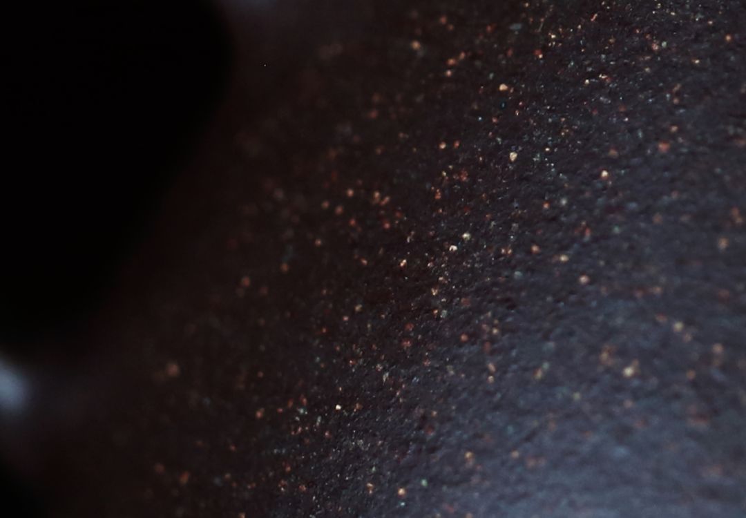 底槽清中尤以黃龍山4號井的最為稀貴(4號井現(xiàn)已不開采),燒成后有隱約朦朧黑影(黑鐵質),而且能看到金黃色的砂粒,金砂點點,宛似夜空繁星閃耀。