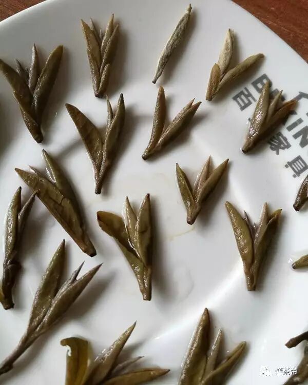 當(dāng)然,要說(shuō)明的是,從圖片只能看到茶餅的局部,由于沒(méi)有看到實(shí)物,不敢100%確定這茶一定是“撒面”的。今年市場(chǎng)有些例外,由于天氣原因,很多銀針采制不及時(shí),都會(huì)出現(xiàn)明顯的“魚(yú)葉”。所以茶友“劍梅”發(fā)的圖片,有些葉片沒(méi)有達(dá)到銀針的采摘級(jí)別,尚可理解,但不確定是不是這款茶的普遍現(xiàn)象。