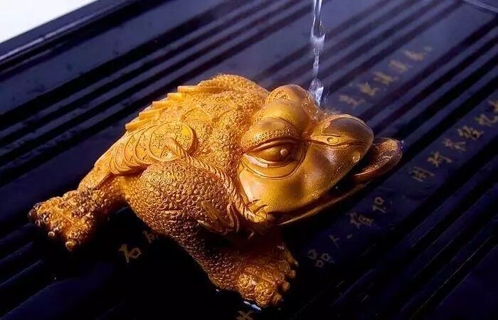 土豪茶臺(tái)上,經(jīng)常出現(xiàn)的就是造型為三足金蟾的茶寵。