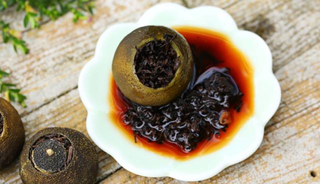 《本草圖經(jīng)》有說青柑皮主氣滯,下食,破積結及膈氣;《現(xiàn)代實用中藥》也有說:青柑皮治胃痛,吐逆,解熱,消痰水。后跨越時間和空間,與云南的普洱熟茶相結合,締造出獨具風味、有良好效用的小青柑普洱茶。