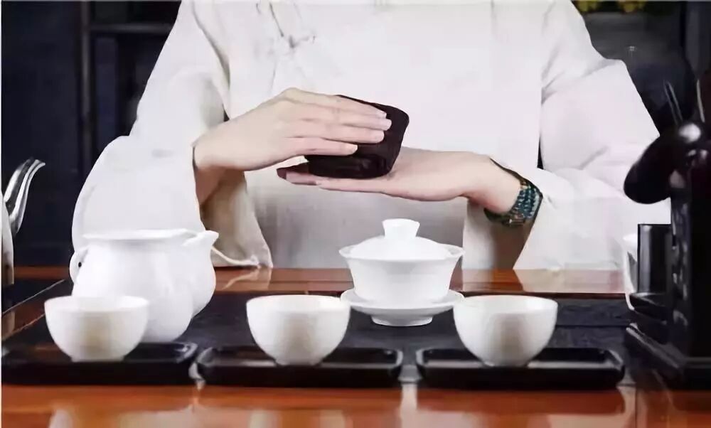 把茶葉放到茶壺里,稱為馬龍入宮。名字叫的好聽,程序簡單,表演可以適當(dāng)加入花式,更具有茶韻。