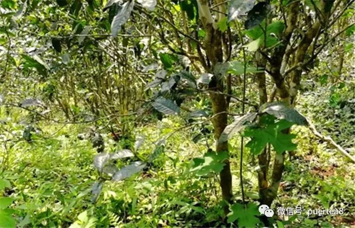 白沙河離刮風(fēng)寨約15公里左右路程,早年挖礦的小公路直通茶地上頭,非常方便。白沙河與茶王樹茶地中間隔有三家村茶地,靠近河邊的古樹根部很大,與茶王樹茶地一樣早年受山火焚燒過,海拔落差也大。