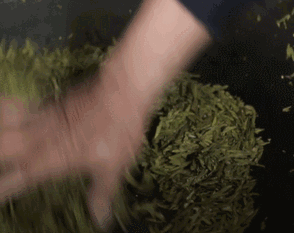 選用半手工制作,前期機器殺青,由專門的炒茶師看守一旁根據(jù)茶青不斷調整,之后攤晾回潮。
