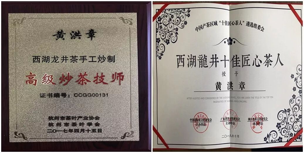 “高級炒茶技師”、“西湖龍井十佳匠心茶人”